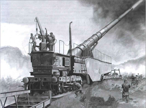 Железнодорожная станция где-то на Западе, возможно - Люттих. На станции находятся три 240-мм пушки «Теодор Бруно», замаскированные на своих огневых позициях. Пушки весьма сложно идентифицировать при наблюдении с рас-стояния - выделяются только краны для погрузки боеприпасов.