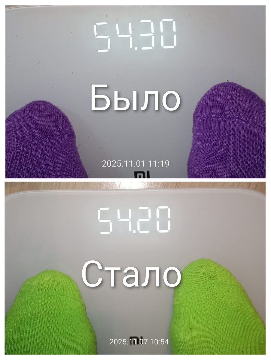 Всем привет! С Вами Татьяна, пенсионерка. Мне 74 года, рост 151 см, вес 54,2 кг ✅ 27.02.23 мой вес был 82 кг. В процессе своего похудения в течение 2023-25 года я сбросила почти 28 кг лишнего веса. *** За прошедшую неделю минус 100 г **************************** 1.11.25 было 54,3 кг 8.11.25 стало 54,2 кг **************************** За прошедшую неделю вес уменьшился на 100 г. Вес не увеличивается потому, что я катаюсь на велотренажёре, хотя и суточная калорийность питания более 500 ккал. **************************** Начало моего похудения 27.02.23 было 82 кг 8.11.25 стало 54,2 кг Минус 27 кг **************************** 2023 год Февраль 82 кг Март 74,3 кг Апрель 71,9 кг Май 69,75 кг Июнь 68,25 кг Июль 66,35 кг Август 65,3 кг Сентябрь 65,2 кг Октябрь 63,9 кг Ноябрь 62,5 кг Декабрь 61,25 кг Минус 20,75 кг за 2023 год **************************** 2024 год Январь 59,9 кг Февраль 59,6 кг Март 59,2 кг Апрель 57,95 кг Май 57,4 кг Июнь 56,65 кг Июль 56,85 кг Авгус