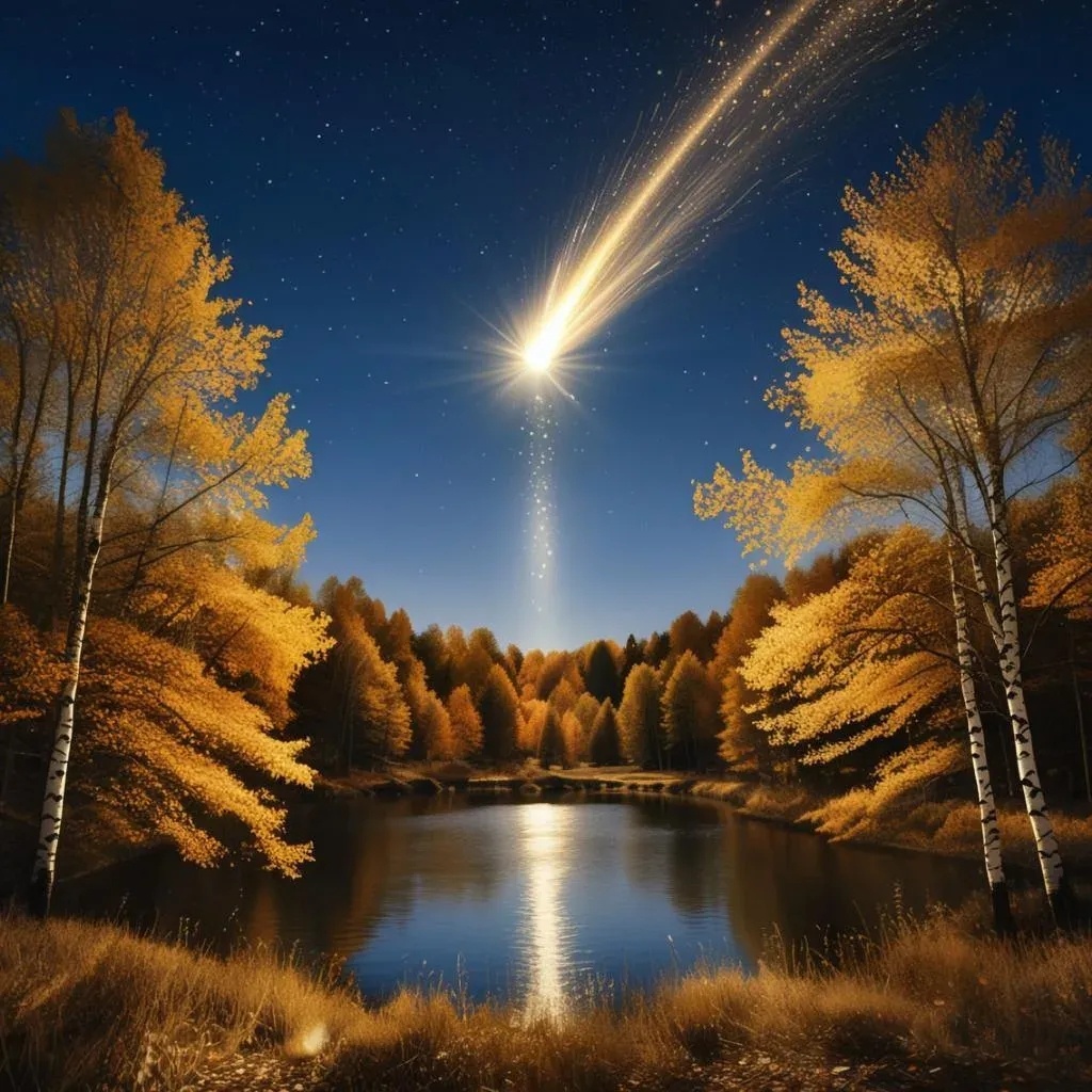 В своих комментариях Дорофеич написал четверостишие: Звезда упала и так ярко там горит А может это был метеорит Теперь уже сгорел и мы его не спросим Там листья золотом горят. И это осень! Очень понравилось. Продолжил по-своему. ++++++++++++++++++++++++ Звезда упала и так ярко там горит, А может это был метеорит? Теперь уже сгорел и мы его не спросим. Там листья золотом горят. И это осень! ++++++++++++++++++++++++ С меланхоличным окрасом. Cочини: И я прошу: "Душа моя, молчи". Не надо мне терзать себя напрасно Ведь эта осень в целом так прекрасна. ++++++++++++++++++++++++ Смотри, какая неба глубина Куда-то вдаль летит моя мечта. В ней много и любви и красоты. Я знаю, что она меня спасет. ++++++++++++++++++++++++ И в трудный час к себе она прижмет, Я верю, что она со мной всегда. Она — моя счастливая звезда. Она — мой ангел и хранитель мой. ++++++++++++++++++++++++ Она всегда была моей судьбой. И пусть она останется такой. Какою ее создала природа. Я знаю, что пройдут мои невзгоды. ++++