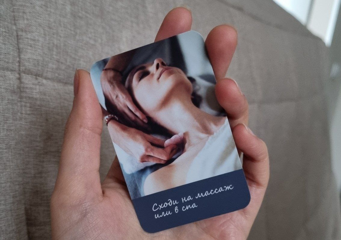 Смотрю на неё и пытаюсь себя заставить пойти на массаж... Кому еще подсказок с удовольствиями на эти выходные? Напишите в комментариях 1 или 2 числа от 1 до 50 и я пришлю подсказку из колоды "Удовольствие каждый день")