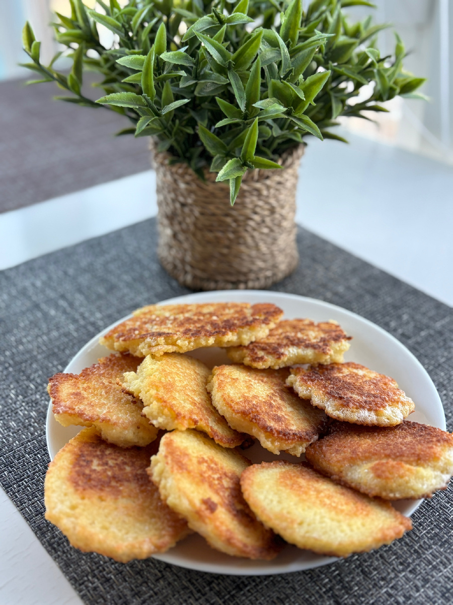 Этот рецепт выручает меня каждый раз, когда хлеб неожиданно заканчивается. Готовятся такие лепёшки проще некуда, а результат всегда радует! Ингредиенты (примерно): · Кускус — около 1 стакана · Холодная вода — для запаривания · Яйца — 2 шт. · Соль — по вкусу · Масло для жарки Приготовление: 1. Кускус высыпьте в миску и залейте питьевой водой так, чтобы она покрывала крупу примерно на 0,5 см. Оставьте на 5-10 минут, чтобы крупа впитала воду 2. В набухший кускус добавьте яйца и соль. Хорошо перемешайте до получения однородной массы. 3. Разогрейте на сковороде немного масла. Выкладывайте тесто ложкой и формируйте лепёшки. 4. Обжаривайте на среднем огне с обеих сторон до румяной и аппетитной корочки. Идея подачи: Эти лепёшки универсальны! Подавайте их к супу вместо хлеба, намажьте сливочным сыром или авокадо для сытного завтрака. Если хотите сладкого, полейте их мёдом или сгущёнкой. Очень рекомендую попробовать! Пиши в комментариях понравился ли тебе рецепт 😉