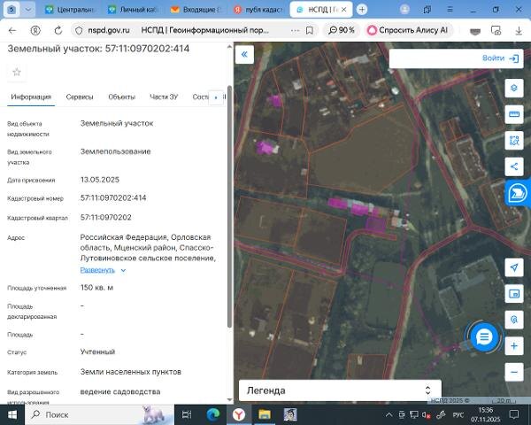 Название: Земельный участок с кадастровым номером: 57:11:0970202:414, из категории земель: земли населенных пунктов, разрешенного