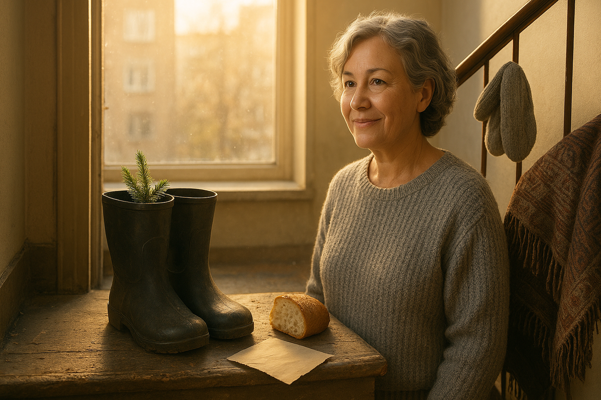 В тот вечер она поставила сапоги, как всегда, носами в стороны. Между — маленький кусочек хлеба. На подоконнике — кружка остывающего чая с корицей. Ладонь задержалась на резине — шершавой, солёной, родной. Лифт тронулся вверх, сердце привычно ухнуло вниз — но не глубоко. Дверь прикрылась мягко. Впервые — не чтобы спрятаться, а чтобы слышать.