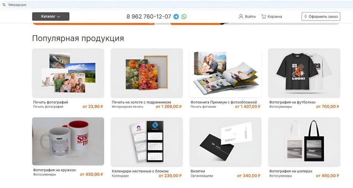 * Удобство оформления: загрузка макета, выбор услуги, оформление заказа онлайн.