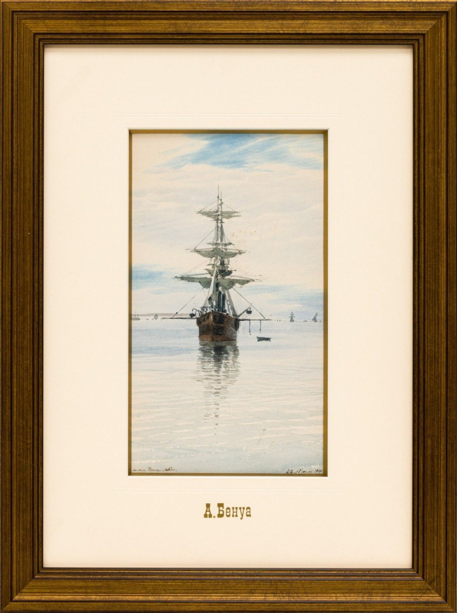 Русская антикварная галерея Сайт: rus-gal.ru #Бенуа Альберт Николаевич - #Рисунок «#Парусник» Россия, 1884 год. #Акварель, бумага, графитный карандаш, лак. 25 Х 14 см #Реализм #Марина #Графика_19_века Подробнее: https://rus-gal.ru/works/risunok-parusnik/