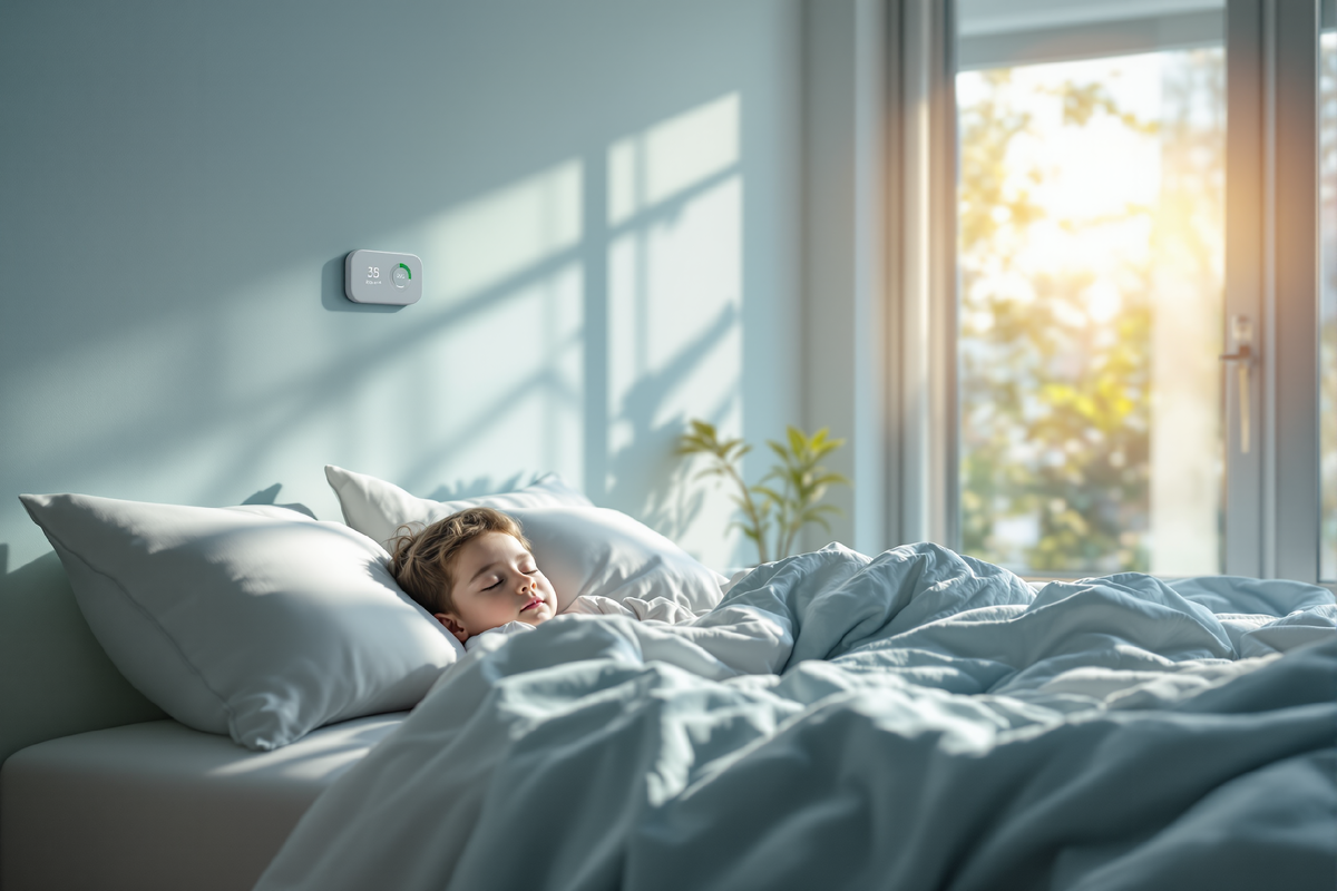 Климат класса А — это четыре параметра одновременно: CO₂ в пределах 700-1000 ppm близко к уличному фону, влажность 40-60% круглый год без перепадов, PM2.5 не выше 15 мкг/м³ благодаря фильтрации на притоке, скорость воздуха в зоне сна не больше 0,15 м/с без сквозняков.