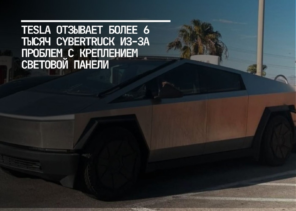 Tesla объявила отзыв 6 197 пикапов Cybertruck после выявления дефекта в креплении дополнительной световой панели. Как сообщили в Национальной администрации безопасности дорожного движения США (NHTSA), при установке аксессуара могла быть использована неправильная грунтовка, из-за чего панель могла отслаиваться от лобового стекла. Компания обнаружила проблему ещё в феврале и после химических тестов выяснила, что применяемый состав BetaPrime не подходит для данного типа поверхностей. Tesla проведёт бесплатную проверку автомобилей и заменит или укрепит световую панель механическим креплением. Инцидентов с травмами не зафиксировано. Это уже третий отзыв Cybertruck в 2025 году — ранее компания устраняла проблемы с кузовными панелями и слишком яркими фарами.