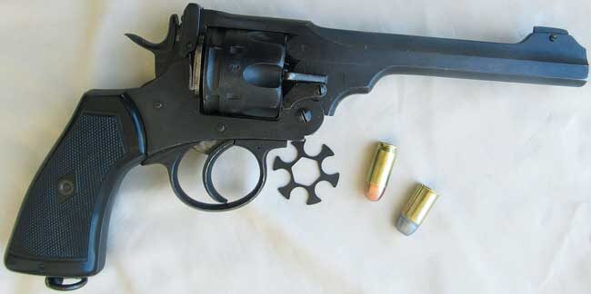 - Калибр: .455 Webley (оригинальный), часто встречается переделанный под .45 ACP