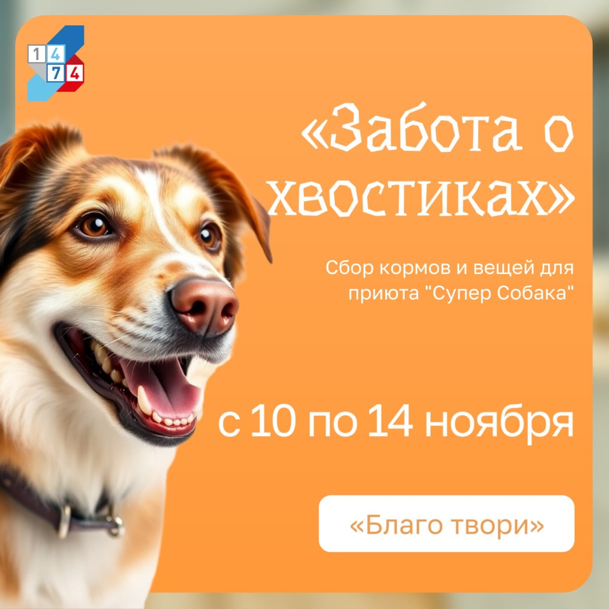 🐶 Акция «Забота о хвостиках»: давайте поможем четвероногим друзьям! Добровольческий центр «ДШУ‑1474» приглашает учеников, родителей и педагогов присоединиться к доброму делу в рамках Всероссийского проекта «Благо твори»! Когда: с 10 по 14 ноября. Что делаем: собираем корм и нужные вещи для животных. 🏁 Финал акции: выезд в приют «Супер Собака», куда мы передадим всё собранное. Куда приносить: на пост охраны здания по адресу: Клинская, д. 22 📋 Что можно принести: 🔹 консервы для собак (например, Happy dog, «Зоогурман», «Brit») 🔹 капли от клещей «Барс» для собак 🔹 препараты от паразитов (Каниквантел, Дронтал, Эндогард) 🔹 латексные или нитриловые перчатки (размеры M, L) 🔹 большие марлевые салфетки 🔹 лейкопластырь обычный и пластырь омнификс 🔹 ошейники (30–50 см) и брезентовые поводки (3–5 м) 🥫 Важно: корм принимается только в виде консервов в жестяных банках! Подробнее о всех видах помощи — смотрите на сайте приюта 🐕 📞 Телефон для справок: +7 (926) 756‑43‑70, педагог‑о