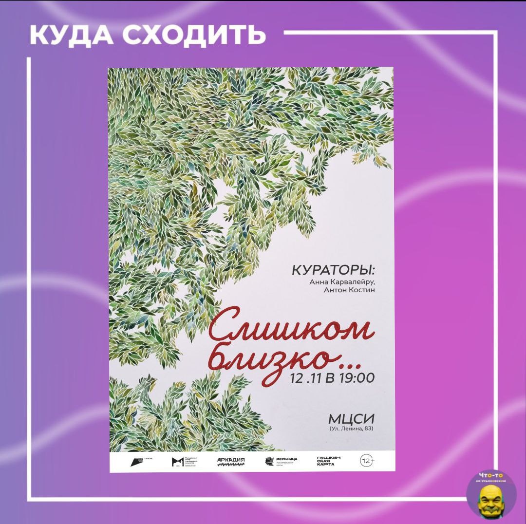 Открытие выставки ульяновских художников «Слишком Близко…» 🖼 Это один из проектов-победителей open-call 2025 года на пятый выставочный сезон Центра. Кураторы Анна Карвалейру и Антон Костин рассматривают понятие «близости» по Канту как трансцендентальное понятие, относящееся к формам чувственности интуиции пространства и времени. На выставке зритель сталкивается слишком близко с интимными переживаниями самого художника. 📅Когда: 12 ноября в 19:00 📍Где: в МЦСИ (ул. Ленина 83) #куда_пойти_ул