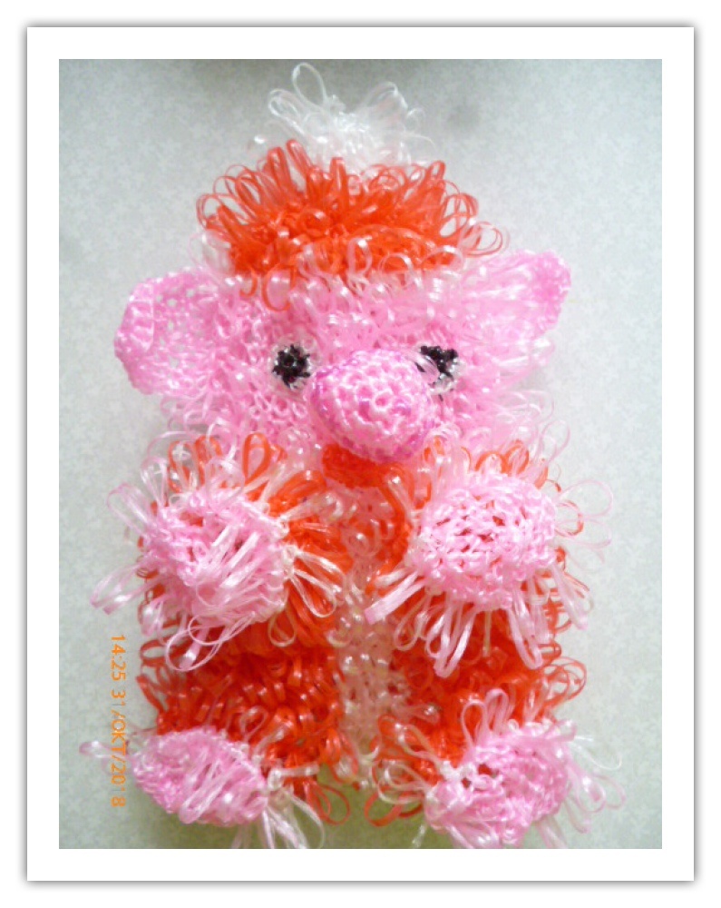 Поросенок новогодний мочалка игрушка вязаная крючком