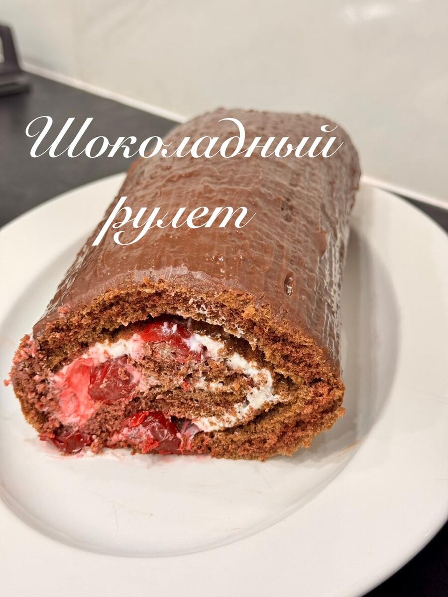 Шоколадный бисквитный рулет делается просто и быстро, вариантов начинки очень много, я решила добавить свежую вишню, можно сделать шоколадный крем, поэтому каждый раз вы можете радовать себя и своих близким новым десертом. Ингредиенты: Корж: • яйца — 4 шт • сахар — 120 г • подсолнечное масло — 30 мл • мука - 120 г • разрыхлитель - 1 пакетик • соль - 1 чл • какао - 2 ст л Крем: • творожный сыр - 250г • сливки 30% - 200 мл • сахарная пудра - 50 г • вишня замороженная - 300 г Глазурь: • шоколад (я беру милку) - 1 плитка • сливки - 30% Способ приготовления: 1. Вбиваем яйца, добавляем сахар, соль и взбиваем миксером в пышную массу. 2. Добавляем соду, муку, какао и вмешиваем в яичную массу вручную, добавляем масло и также размешиваем. 3. Выливаем тесто на противень с пергаментом и равномерно распределяем. 4. Выпекаем примерно 15 минут при 180 градусов. 5. Взбиваем сыр, сливки и сахарную пудру, охлаждаем крем. 6. Готовый корж сворачиваем в рулет (вместе с пергаментом)
