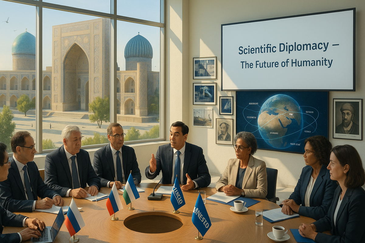 В Самарканде не случайно собрались те, кто рассматривает науку не как инструмент технологического превосходства, а как форму культурного диалога. Город, некогда центр исламского Возрождения, теперь вновь становится пространством научного смысла. Здесь вспоминают традицию Ибн Сины и аль-Хорезми, для которых наука была формой духовного поиска, а не только способом рационального объяснения мира. Научная дипломатия — понятие относительно новое. Оно возникло в XX веке, когда ученые из враждующих государств начали сотрудничать в области космоса и ядерной физики, чтобы сохранить минимальные каналы связи в эпоху холодной войны. Сегодня этот термин вновь обретает стратегический вес.