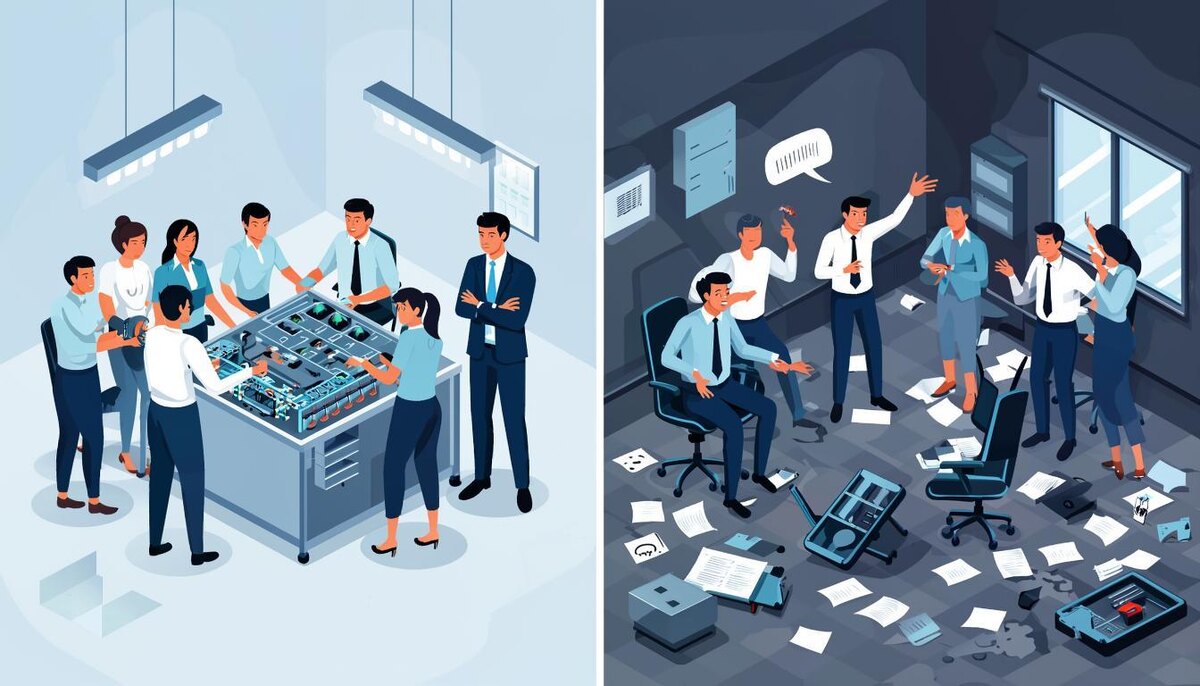 Я расскажу вам про две команды, за которыми мне довелось наблюдать почти одновременно. Обе состояли из толковых, умных ребят. Обе работали над сложными и амбициозными проектами. Но одна команда в итоге выкатила на рынок продукт, которым искренне гордилась, а вторая – бесславно сгорела в аду из внутренних интриг, сорванных сроков и бесконечных взаимных обвинений.