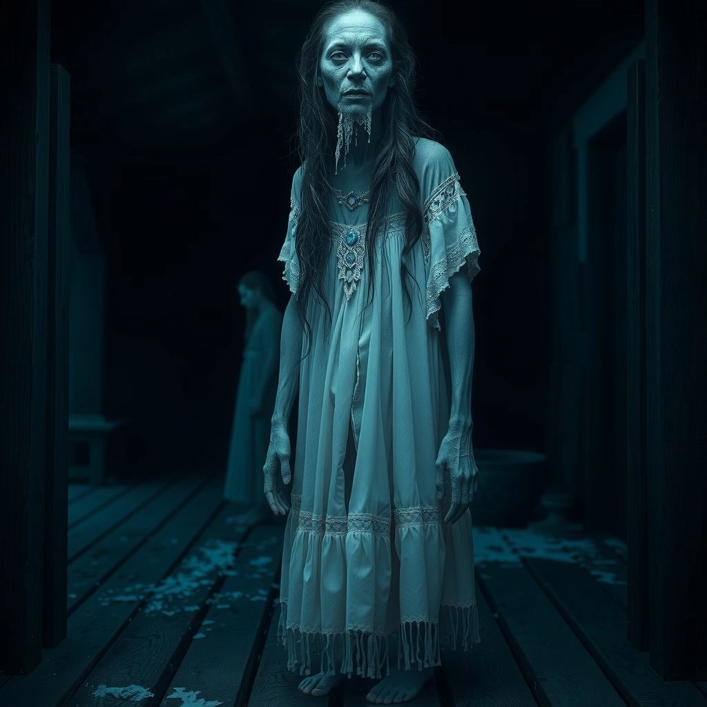 Из-за сосны, белой от инея, на него смотрели два глаза. Голодные. Знакомые. Потом показалась фигура. Босая, в разорванном белом сарафане, с кожей сизого, мертвенного оттенка. Радослава. Но в ее глазах не было ни печали, ни покоя. Только бесконечная, леденящая пустота и тихая, безумная ярость.