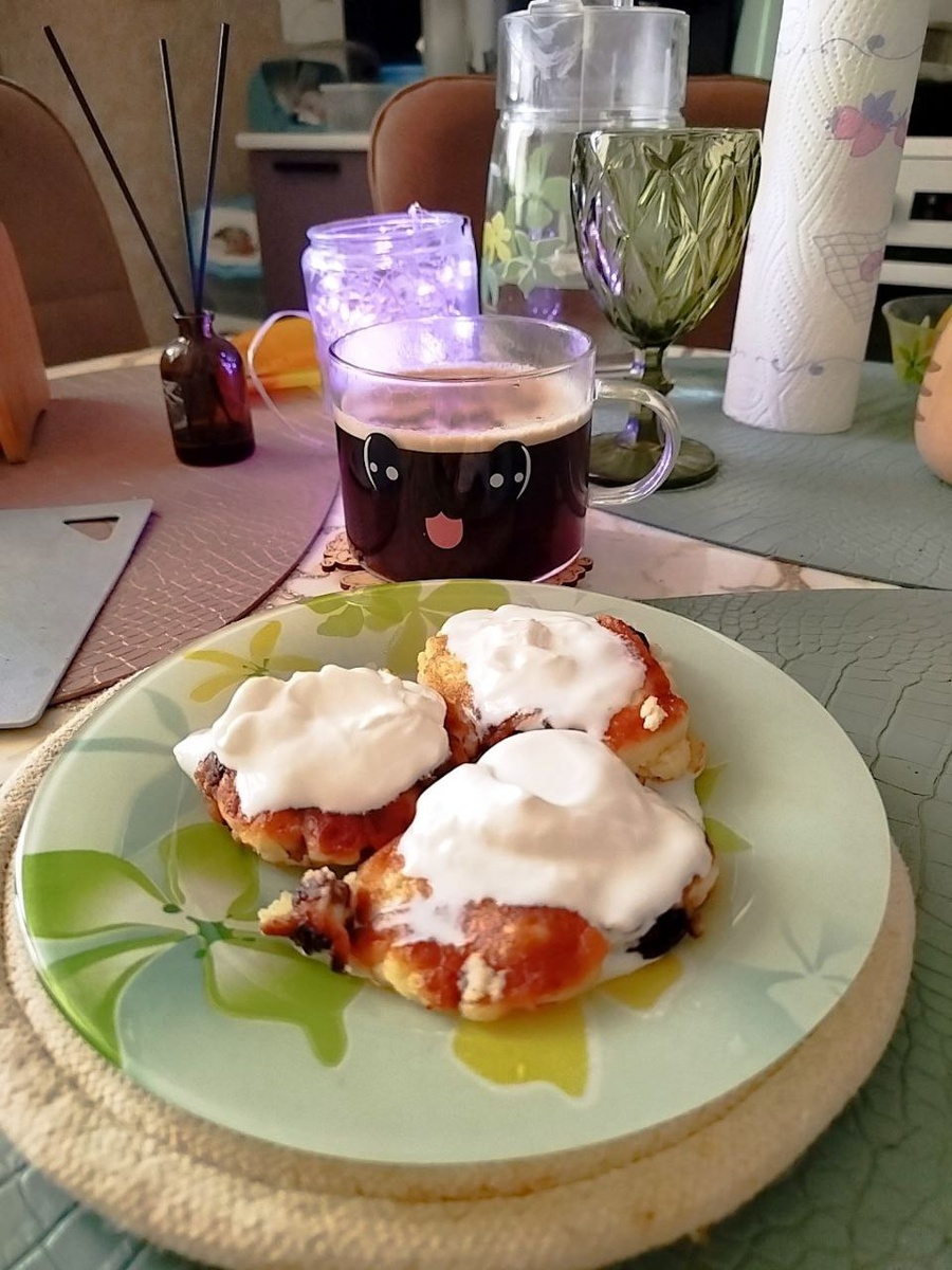 А я опять начала заниматься спортом, прям захотелось поднять себе настроение и взбодриться с утра и теперь можно вкусно покушать😋 На завтрак у меня ✅ Сырнички с изюмом и сметанкой ✅ Американо с корицей ✅ И может еще бутербродик сделаю себе (надо подумать 🤔) А что у вас на завтрак? Присылайте фоточки 📸
