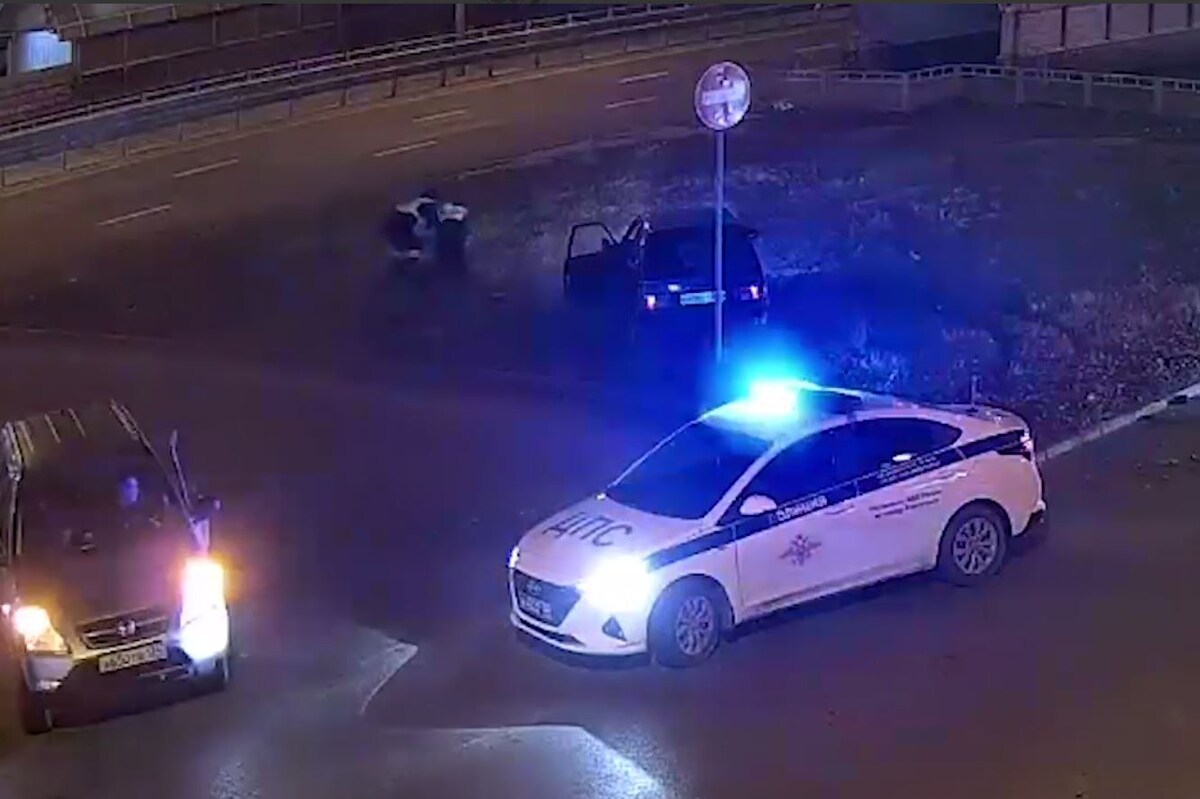 В Дзержинском районе Волгограда на видео попало странное ДТП и погоня сотрудников ГАИ за его виновником, пытавшимся скрыться на своих двоих.