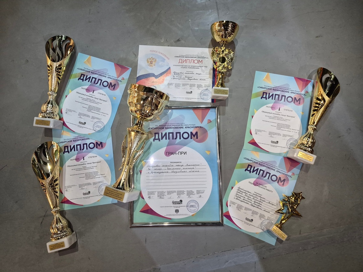 «Мы сорвали в Красноярске джек-пот...» Целую россыпь высоких наград завоевали солистки группы «Новое достижение» образцового ансамбля танца «Виктория» на XV Международном творческом фестивале-конкурсе «Сибирское вдохновение». 25 октября столица Сибири встречала конкурсантов из разных городов нашей страны. В этот день сцена ДК «Свердловский» наслаждалась живым языком танца в исполнении юных сибиряков, уральцев, якутов, бурятов и т.д. Свердловскую область на престижном конкурсе международного масштаба представляли воспитанницы Дворца культуры «Металлург». На суд жюри они вынесли три танцевальные композиции: «Заплетися, плетень», «Тачанка» и «Солдатская пляска». – Если первые два танца у нас уже имеют свою творческую историю, то «Солдатская пляска» – абсолютно новая композиция, увидевшая свет в преддверии 80-летия Победы, – рассказала балетмейстер-постановщик образцового ансамбля танца «Виктория» Татьяна Савина. – Тем не менее, мы решили включить ее в нашу конкур Показать полностью...