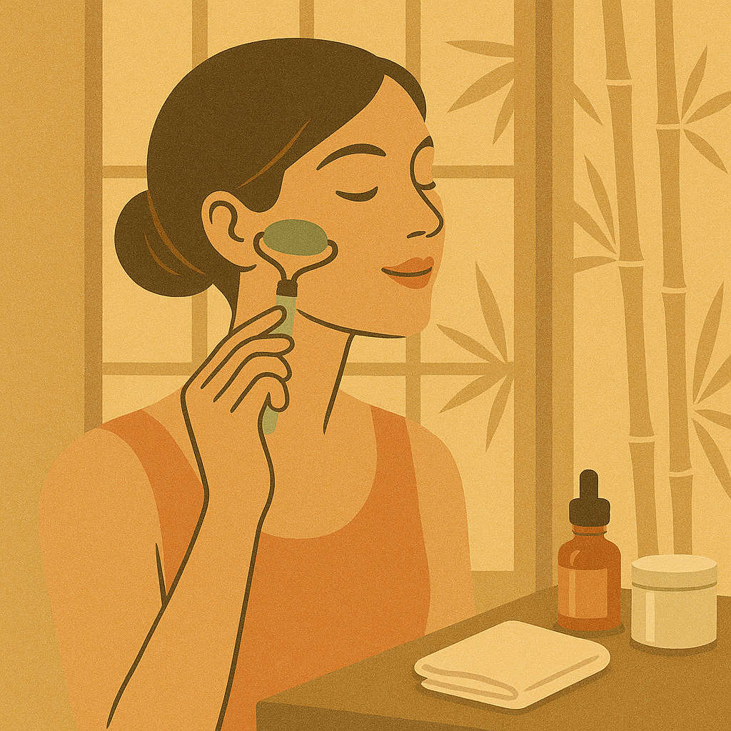 А потом обнаружили: если делать те же движения по лицу, кожа становится ровнее, а контуры — чётче. Камень (обычно нефрит или розовый кварц) ведут по линиям лимфотока — от центра лица к вискам, от шеи вверх к подбородку.