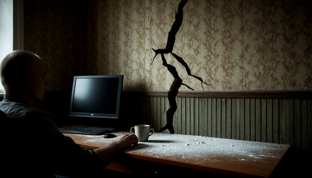 Но утром, когда я проснулся, на стене обнаружил трещину. Тонкая, вертикальная, от потолка до пола. Свежая. Вчера её не было.