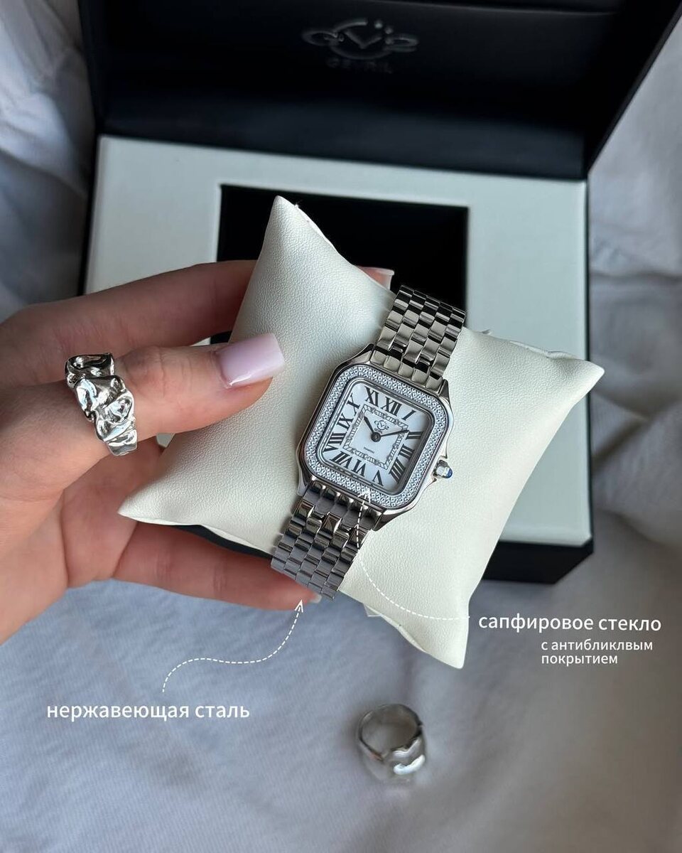 😉😉😁😉😚😉☺️😚😉😉❗️ 💎 Те самые GV2 by Gevril 🔴Нежный циферблат с настоящими бриллиантами, 🔴Изящный браслет из серебристой стали, 🔴Швейцарский кварцевый механизм под капотом 😍 Представьте: утро, вы поднимаете руку за кофе — и лёгкий блеск бриллиантов ловит свет. Кто-то спрашивает: «Это… Бриллианты?» А вы просто улыбаетесь ☺️