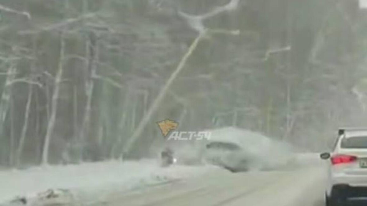 Водитель снёс фонарный столб из-за гололёда в Новосибирске