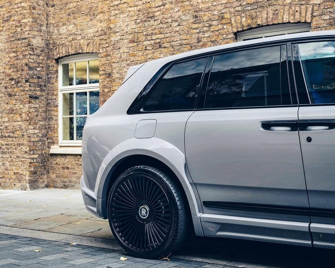 Вот, например, один мускулистый автомобиль, который выглядит так, будто готов бросить вызов Aston Martin DBX S, Ferrari Purosangue и Lamborghini Urus в гонке на скорость. Однако это не значит, что он может обойти знатных гонщиков. Благодаря модифицированному экстерьеру он, однако, может стоять с ними наравне, не выглядя аутсайдером. Давайте рассмотрим этого тюнингованного красавца! Расширители арок и боковые юбки смотрятся на нём великолепно. Нижняя часть переднего бампера модифицирована и теперь оснащена дополнительными дневными ходовыми огнями. А на крышке багажника появился фартук. Что же нового с другой стороны? Четырехреберный диффузор и накладки по бокам заднего бампера. Пакет удаления хромированных деталей сделал этот Rolls-Royce Cullinan Series II еще более спортивным. Поскол
