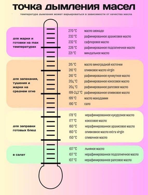 На каком масле жарить? Секрет в температуре дымления 🍳 Видели, как масло на сковороде начинает дымиться и пахнуть горелым? Это не просто испорченный вкус — это сигнал опасности! При перегреве масло распадается на токсичные соединения. Но есть простой способ этого избежать — знать температуру дымления. Сохраняйте гид по маслам 🧈 Лайфхак: Держите на кухне два вида масел — с высокой точкой дымления для готовки и нерафинированное для заправки. #здороваякухня #масла #жарка #нутрициолог