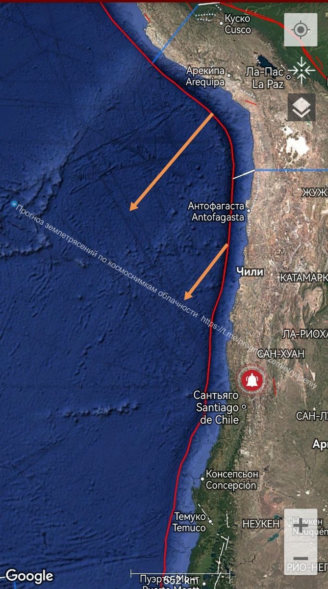Продолжает поддавливать западное побережье Южной Америки. ОСТИ уровня М6-7 наблюдаются в районе Чили и Перу. ====== M6-7 level CSTIs are observed in the area of Chile and Peru