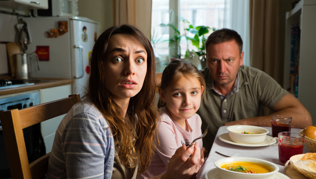 В комнате повисла тишина. Я медленно положила ложку и посмотрела на мужа. Он сидел, опустив глаза, и явно избегал моего взгляда.