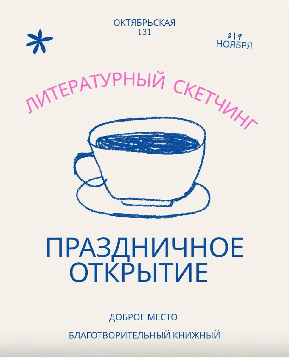 Краснодар! Завтра буду на литературном скетчинге и вас приглашаю 💚 Литература и рисование в самом добром месте Краснодара🫶🏻 Подробности здесь! Этот особенный воркшоп мы проводим в честь открытия «Благотворительного книжного» в уютном пространстве «Доброе место» от благотворительного фонда «Добрый-Юг»! 📍Краснодар, Октябрьская 131 9 ноября (воскресенье) 14:30 Участие: 1000 р. приобрести билет в @Dombrodskiy 📎Полная программа вечеринки-открытия