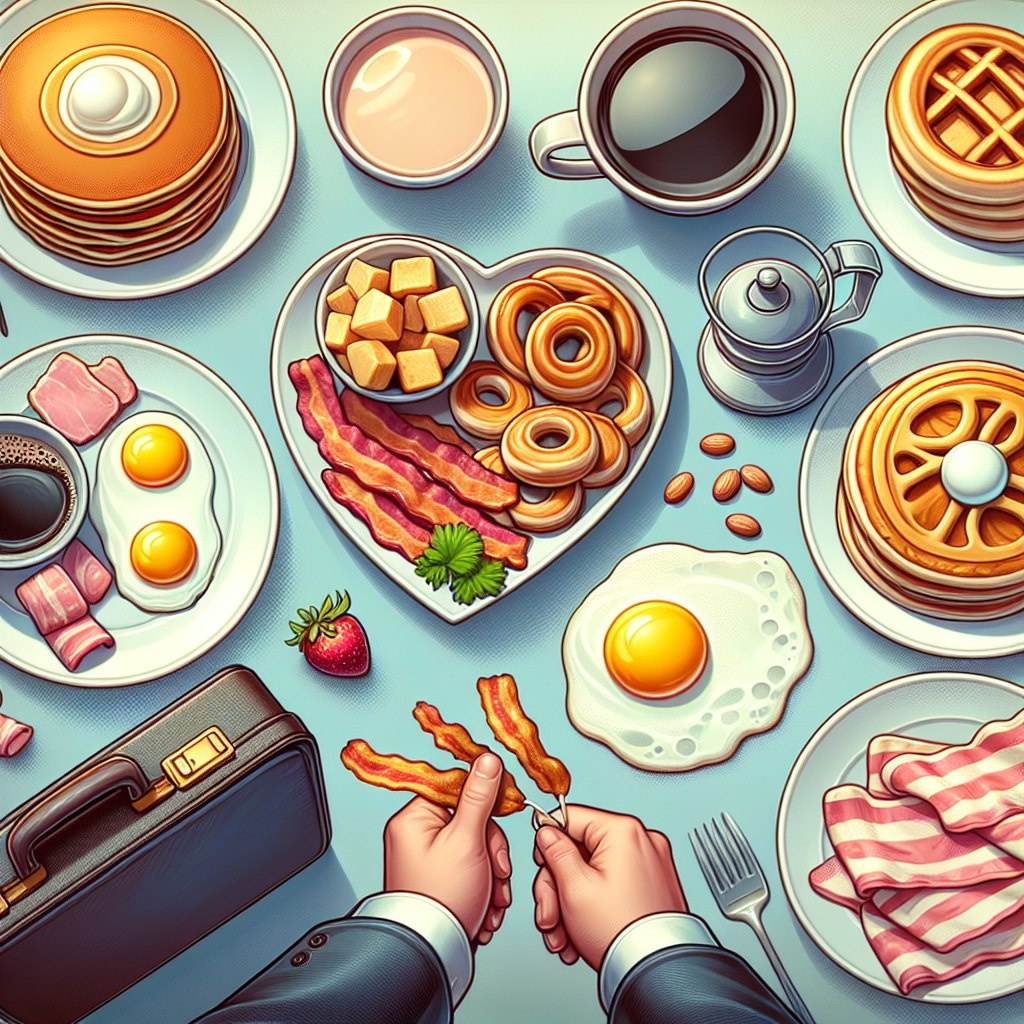 Завтрак "Breakfast" - завтрак Ежедневный приём пищи утром. 🥞🍳 "To grab a bite" - перекусить Быстро поесть, чаще всего что-то лёгкое. "Bacon and eggs" - бекон с яйцами Популярное утреннее блюдо. "To skip breakfast" - пропустить завтрак Пропустить утренний приём пищи. 🚫💼 Пример: "I usually grab a bite for breakfast." - Обычно я перекусываю на завтрак.