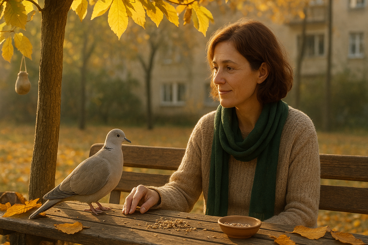 Один голубь всегда выбирает спинку скамейки. Переступает розовыми пальцами по облезлой краске, тянет шею, будто узнаёт. Ольга ловит себя на том, что задерживает дыхание: если назвать его по имени мужа — не предательство ли это? Она не называет. Но на следующий день всё повторяется.