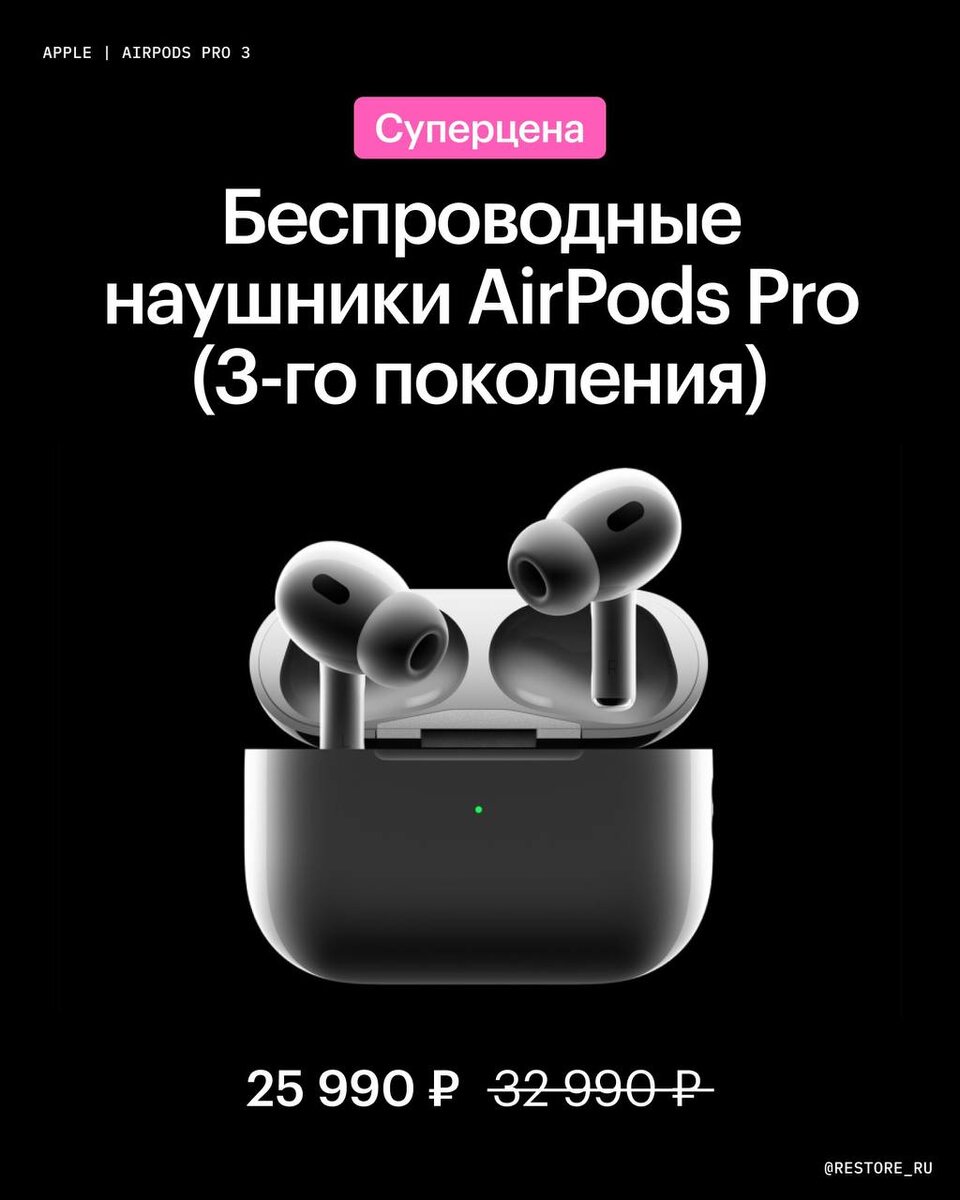 🍎 Хочется брать прямо сейчас AirPods Pro 3 от ✨25 990 ₽ ✨— кристальный звук, активное шумоподавление и до 8 часов без зарядки. Идеальны для спорта и города благодаря своим новым функциям. Количество товаров ограничего и может закончиться в любой момент. Рекомендуем не затягивать покупку!