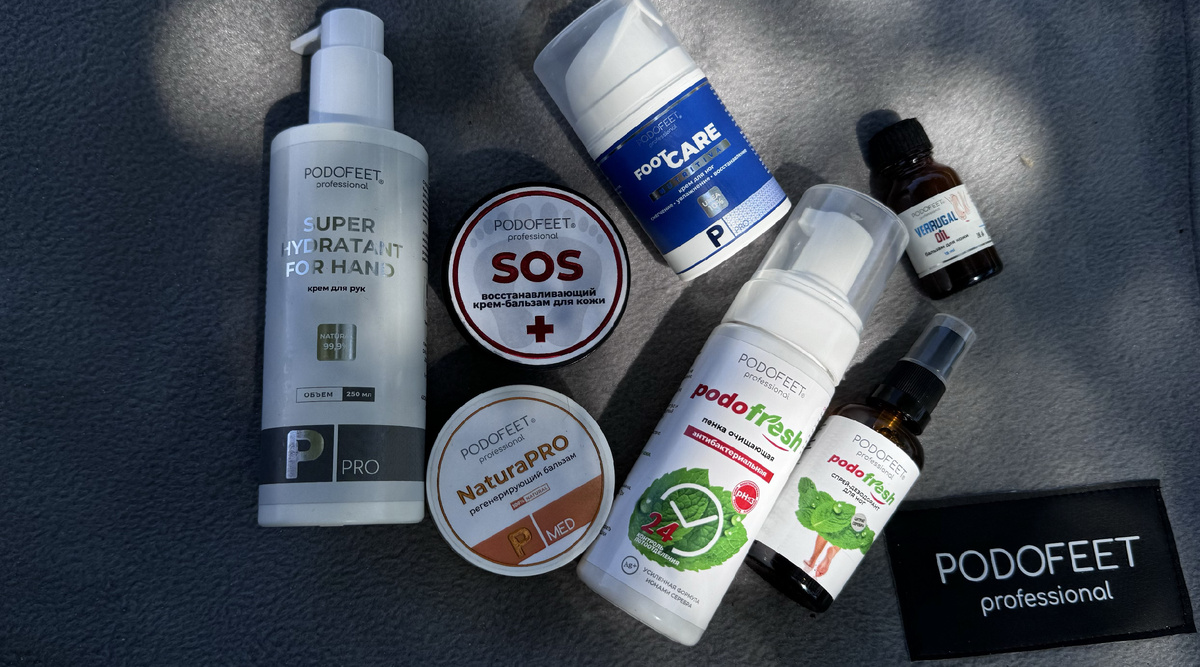 Обработка и снятие воспалительного процесса с помощью средств PODOFEET professional: Спрей PODOSEPT, Гель ARGENTUM, Celoform PODO. Далее применяли: Масло FUNGICIN, Концентрат FUNGICIN, чередуя через день. Для профилактики - Бактерицидный флюид ACTIVE PRO. Фото сделаны с разницей в 6 месяцев.