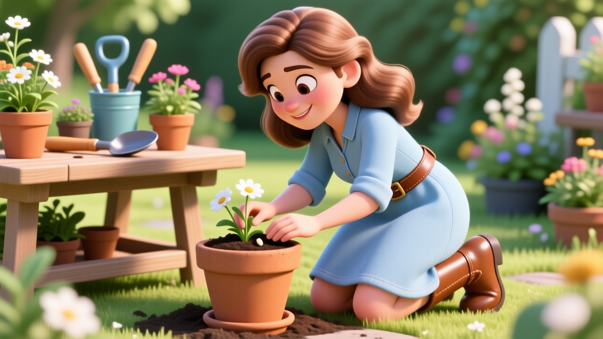 Жила одна женщина, которая очень мечтала о ребёнке, но не знала, где его взять. Тогда она пошла к старой знахарке и попросила помощи. — Я хочу малыша. Подскажи, как мне его найти. — Помогу, — ответила старуха и дала ей необычное ячменное зерно. — Это не простое зерно. Посади его в горшок, и увидишь чудо. Женщина принесла зерно домой, посадила, и вскоре в горшке вырос прекрасный цветок, напоминающий тюльпан. Бутоны были плотно закрыты. Женщина наклонилась, поцеловала лепестки, и цветок распустился. Внутри, прямо на зелёном листочке, сидела крошечная девочка — не выше одного дюйма. Её и назвали Дюймовочкой. Для колыбели девочке служила скорлупка грецкого ореха, для матраца — фиалки, для одеяла — розовый лепесток. Днём она играла на столе: там стояла тарелка с водой, а на ней плавал лепесток — маленькая лодочка. Дюймовочка гребла белыми конскими волосками и пела так нежно, что никто не слышал подобного голоса. Но однажды ночью в комнату пробралась большая мокрая жаба. Увидев девочку, о