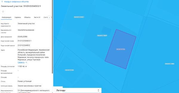 Название: Земельный участок с кадастровым номером 51:01:0204002:1, площадью 1100 кв.м., категория земель – земли населенных пунктов