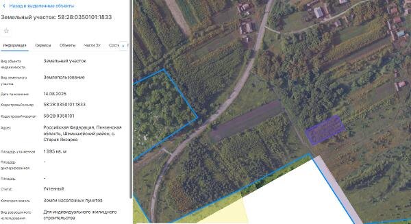 Название: Земельный участок из земель населенных пунктов с кадастровым номером 58:28:0350101:1833, общей площадью 1995 кв.м., с видом