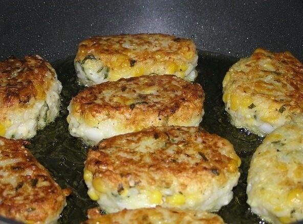 . Получaется вкусный и бюджетный обед. Подаю со сметанкой)) Рисово-кабaчковый котлеты. Ингредиенты: -Вареный рис — 0,5 стакана -Кабачок — 1 шт. -Луковица — 1 шт. -Чеснок — 1-2 зубчика -Яйцо — 1 шт. -Нарезанная зелень укропа, петрушки — 1-2 ст. ложки -Панировочные сухари — 1 стакан -Консервированная кукуруза — 1 баночка -Соль, молотый перец — по вкусу. Приготовление: Кукурузу чуть подавить с небольшим количеством сока из банки. Кабачок натереть на тёрке и слегка отжать сок. Смешать кукурузу, кабачок, вареный рис, мелко порезанные лук и чеснок, зелень и яйцо. Посолить. Затем добавить панировочные сухари, постоянно перемешивая, до тех пор, пока не получится пластичная масса, из которой можно легко сформировать котлетки. Жарить котлеты на сковороде в растительном масле. Приятного аппетита! Не зaбудьте поставить лайк, если понpавился рецепт ❤ ➕ СОХРАНИ, чтобы не потерять!