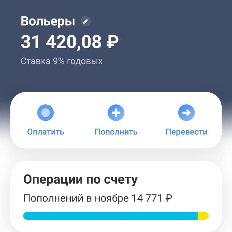 Дополнительно поступили проценты по вкладу на вольеры: 981,68 руб.