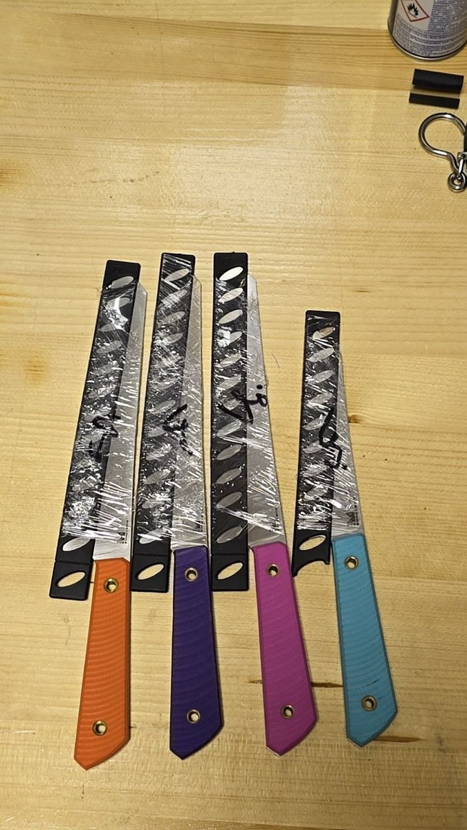 На продажу. Кирицуки с выставки трогали, щупали, роняли. Есть мелкие царапки на клинках на работу не влияют. Заточка на профиле. По 6500 Сталь аус10со g10 накладки. Пишем только мне @burlax1 Будут и другие клинки пока не до них.