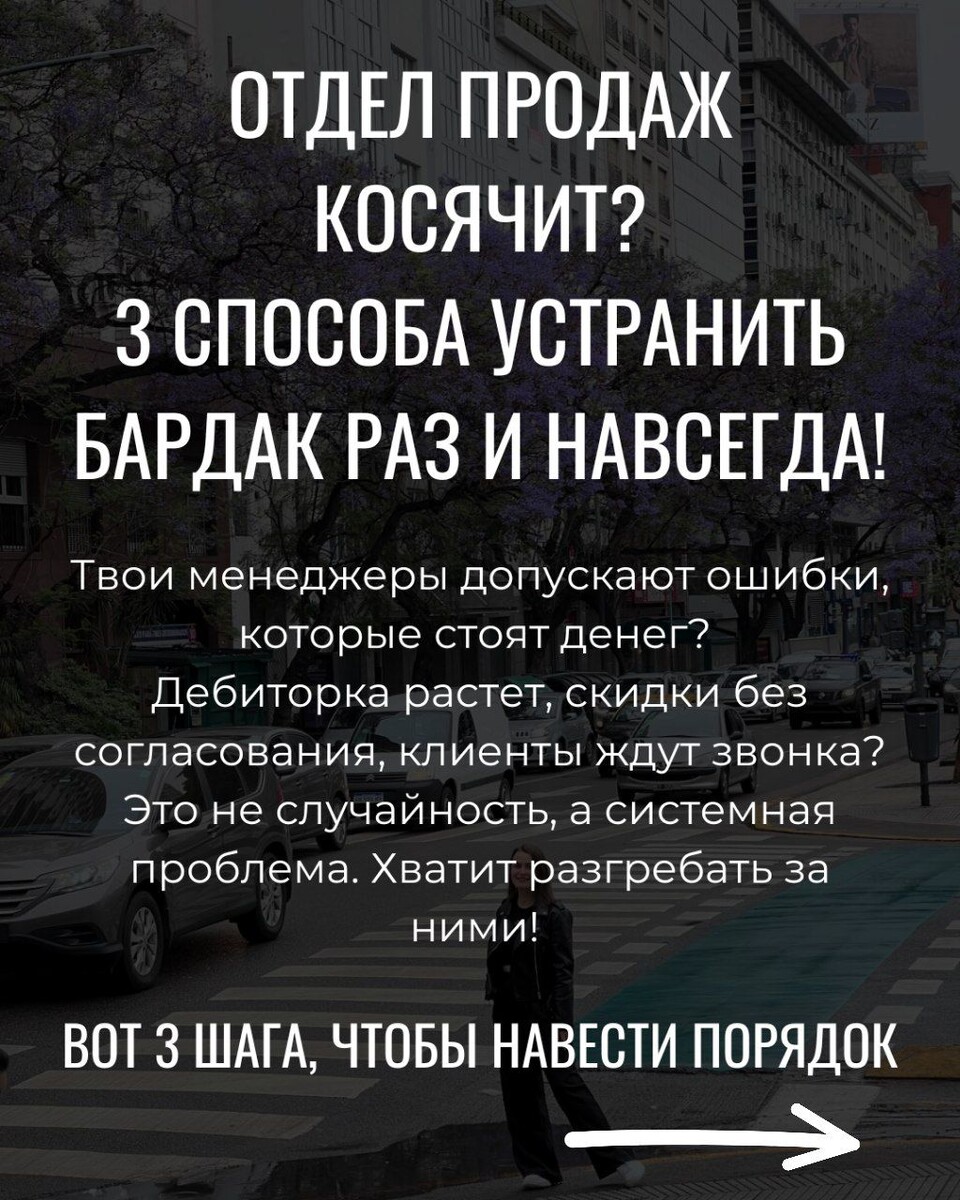 Твои менеджеры допускают ошибки, которые стоят денег? Дебиторка растет, скидки без согласования, клиенты ждут звонка? Это не случайность, а системная проблема. Хватит разгребать за ними! Вот 3 шага, чтобы навести порядок. 1. Бетонные Регламенты и Политики Что делать: Опиши каждый шаг от первого контакта до закрытия сделки и пост-продажи. Кто, что, когда и КАК делает. • Дебиторка: Четкий регламент проверки клиентов, согласования отсрочек, сроков инициирования взыскания. • Скидки: Политика скидок с четкими уровнями согласования. Кто и при каких условиях может дать скидку. • Звонки: Стандарты обработки входящих/исходящих, сроки перезвона и скрипты. Результат: Никаких "я не знал" или "я думал так". У каждого действия - своя инструкция. 2. Неусыпный Контроль и Отчётность Что делать: Внедряй CRM, прослушивай звонки, отслеживай ключевые KPI. Менеджеры должны знать, что их действия мониторятся, а не просто "сдаются на честность". • Дебиторка: Ежедневные отчёты по просроченной д