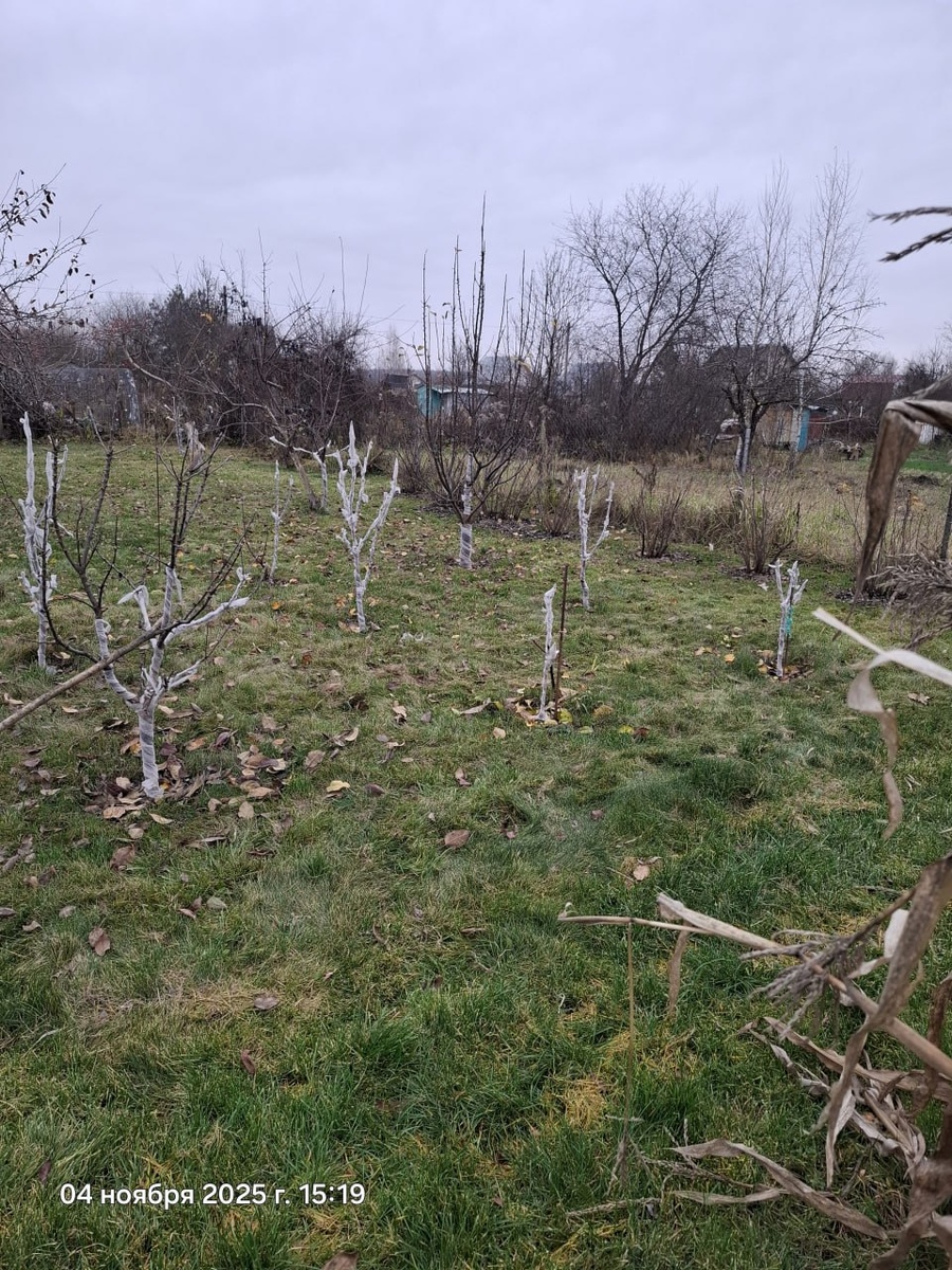 На прошлой неделе укутал молодые саженцы колоновидных и обычных яблонь спанбондом. На мой взгляд, это один из наиболее простых и эффективных способов защиты. Какие существуют способы защиты саженцев от зайцев по тексту ниже👇: 1. Установка ограждений Наиболее надежный способ защиты – установка сетчатых ограждений вокруг каждого дерева. Ограждение должно иметь мелкую сетку, высотой около 80 см, закопанное примерно на 10 см в землю, чтобы предотвратить подкопы животных. Можно также установить общий забор по периметру участка. 2. Использование специальных защитных материалов Для стволов деревьев применяют специальные защитные покрытия: - Агроткань или агроволокно, которое защищает кору от повреждений. - Специальные пластиковые трубки, надеваемые на ствол молодняка. - Металлические сетки, устанавливаемые вокруг ствола дерева. 3. Применение отпугивающих средств Существуют разные способы отпугивания зайцев: - Отпугиватели запаховые: Специализированные препараты, содержащие неприятные для зай