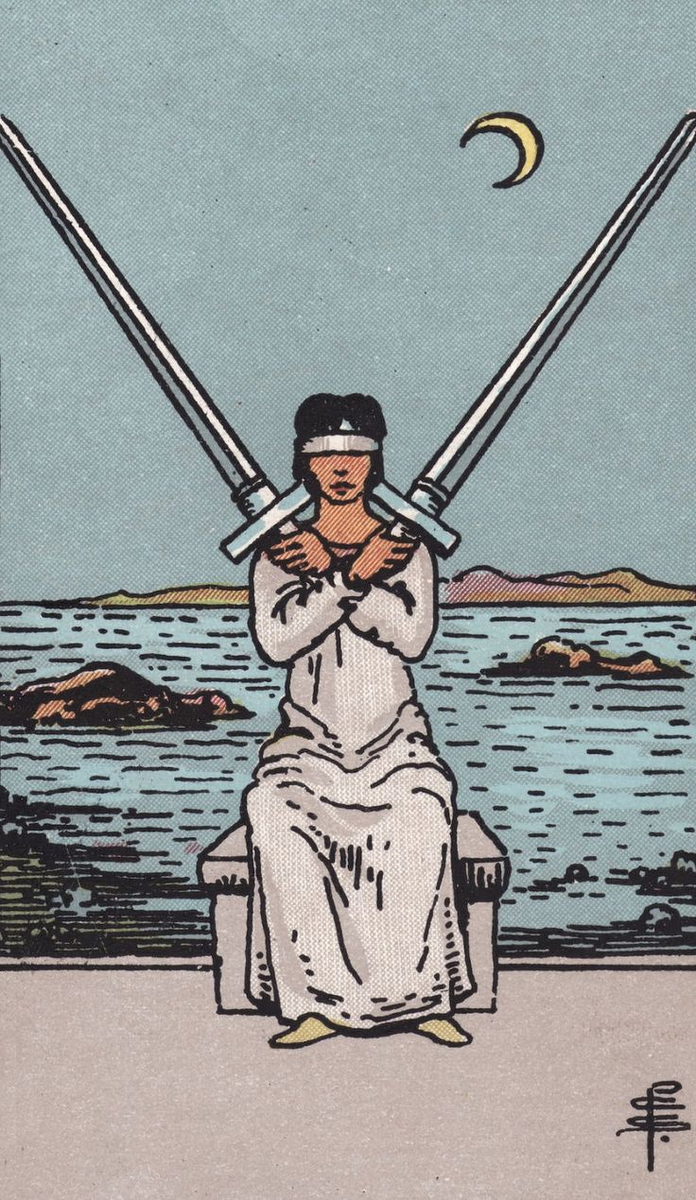 У меня выпала Двойку Мечей на вопрос о чувствах — и, конечно, сразу вспомнила, что эту карту обычно трактуют как блокировку эмоций, закрытость, внутреннее напряжение. Но ведь у каждой карты Таро есть и другая сторона.