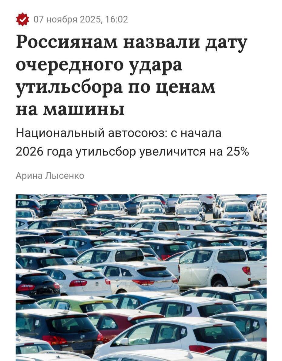 Минпромторг решил дважды врезать по кошельку — утилизационный сбор вырастет с 1 декабря, а потом ещё на 25% с 1 января