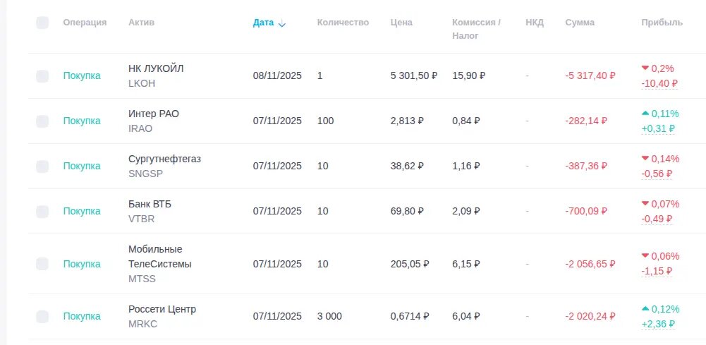 Привет! Сегодня суббота, а это значит, что пятничная закупка переехала на выходной. Всю неделю я ждал Лукойл по 5100 ₽, когда он обвалился. Увы, не дождался: цена ходила в боковике и начала отрастать. Решил подстраховаться, взял 1 акцию по 5 301 ₽. Моя логика проста: чтобы не оказаться в ситуации, когда Лукойл отскочит и пойдет в рост, а я останусь без своей доли "на низах". А если он пойдет дальше вниз, я только обрадуюсь - докуплю ещё по более низкой цене. Лучше купить маленькую часть, чем не купить ничего. Остальное взял по классике: то, что больше всего просело и то, что дает больший процент дивидендами. Так и наращиваем свой портфель. Не ждите идеального дна, его нет. Лучше купить "лесенкой". Это снимает стресс и страх упустить момент. Продолжаем работать над потоком! Подписывайтесь в ТГ https://t.me/passivka_ru и Сообщество https://passivka.ru