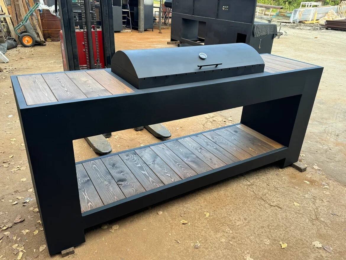 Какой вариант идеально впишется в любую беседку? Это мангал «Модерн» 🔥 Минималистичный, аккуратный, без лишних деталей — но при этом с характером. Идеально подходит как для террас, так и для открытых зон отдыха. ▫️ Размеры: 2000×600×900 мм ▫️ Жаровня: 800×450×200 мм, сталь 5 мм ▫️ Корпус — порошковая покраска ▫️ Жаровня покрыта термостойкой краской Elcon 1200°C — выдерживает даже самые жаркие вечера 😉 Этот мангал универсален — он легко сочетается с любым стилем беседки или навеса, будь то лофт, классика или современный минимализм. Хотите такой же — или свой вариант с доработками под вашу зону отдыха? Напишите нам — сделаем 3D-визуализацию вашего будущего мангала 😌