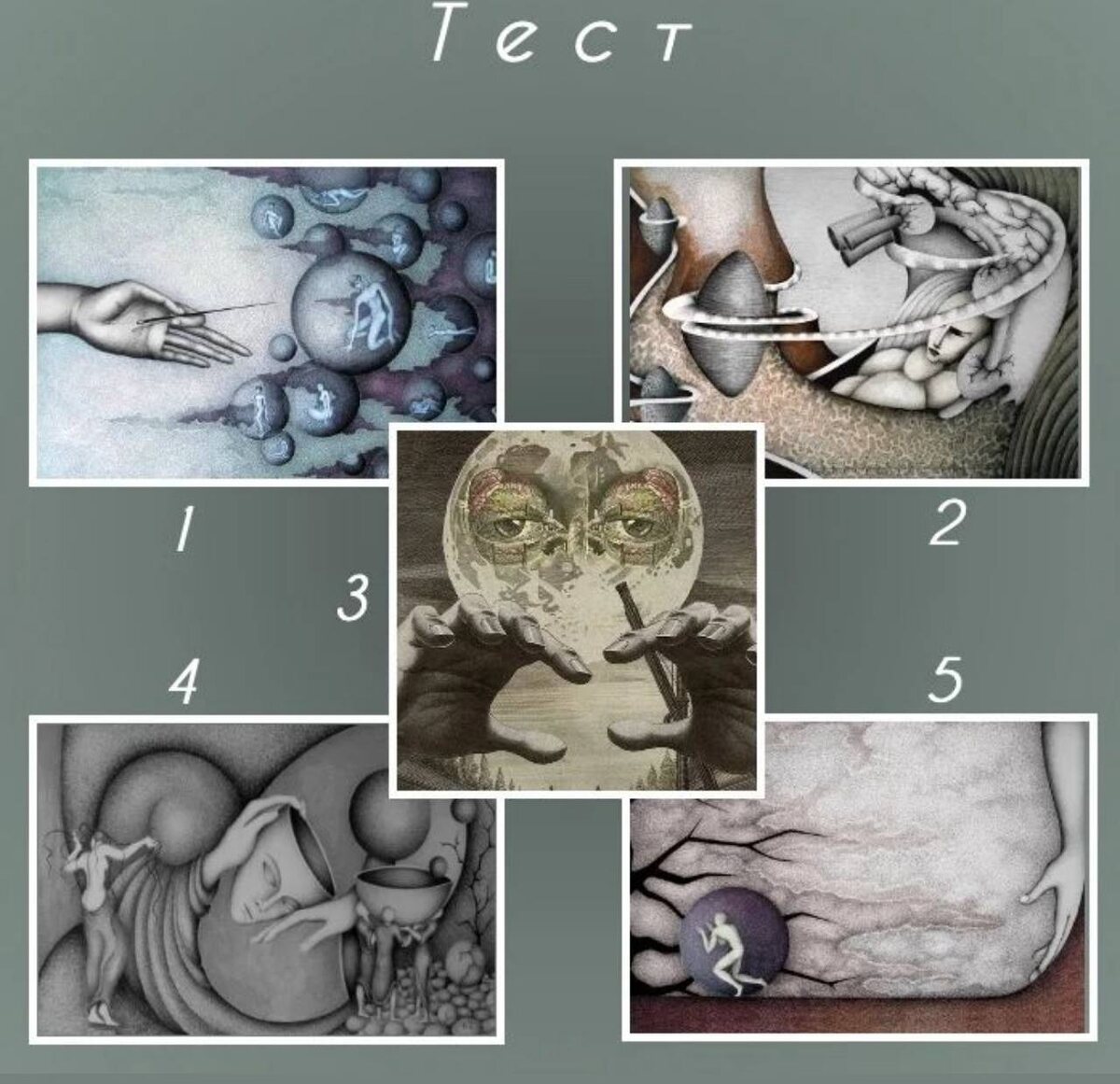 Ваши внутренние барьеры #тестповыходным У каждого из нас есть свои потребности, желания и цели, которых мы всеми силами пытаемся достичь. Но у одних это получается, а у других – нет. Нам кажется со стороны, что кому-то везёт, а кто-то – неудачник. На самом деле, причиной этому может быть наличие внутренних психологических барьеров. Их нужно выявлять, чтобы понять причины возникающих препятствий. В этом поможет тест на основе картин художников – сюрреалистов. Отвлекитесь от реальности и постарайтесь ни о чём не думать. Посмотрите на картины. Какая из них привлекает ваше внимание? Напишите её номер в комментариях⤵️
