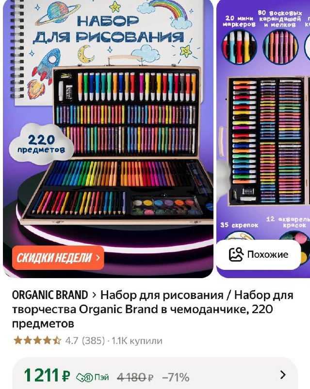 Набор для рисования / Набор для творчества Organic Brand в чемоданчике, 220 предметов https://market.yandex.ru/cc/7xkCCf ⭐️BER103-AF — минус 100₽ на один любой заказ от 5000₽ ✅ Подписаться 🔣 Промокоды тут