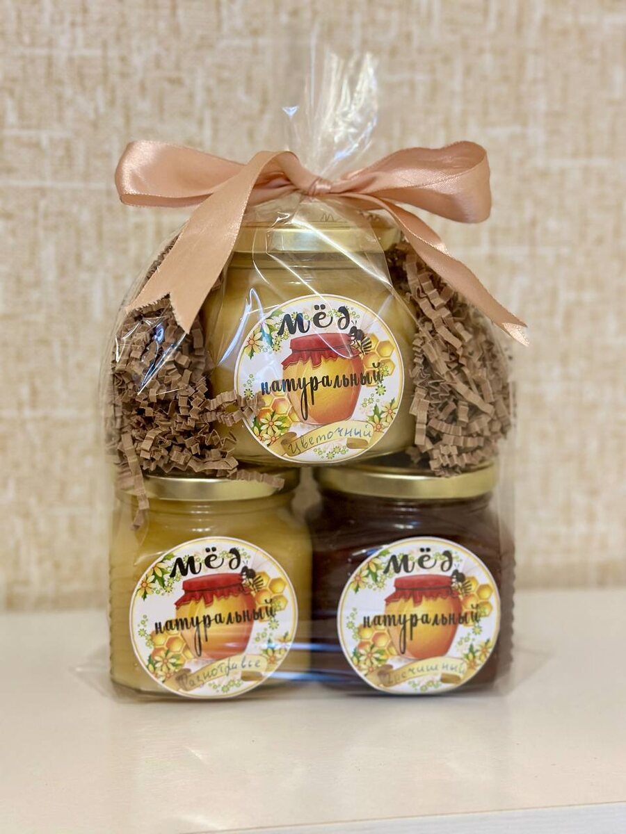 Состав: 3 баночки по 250мл с разными сортами мёда в подарочной упаковке.